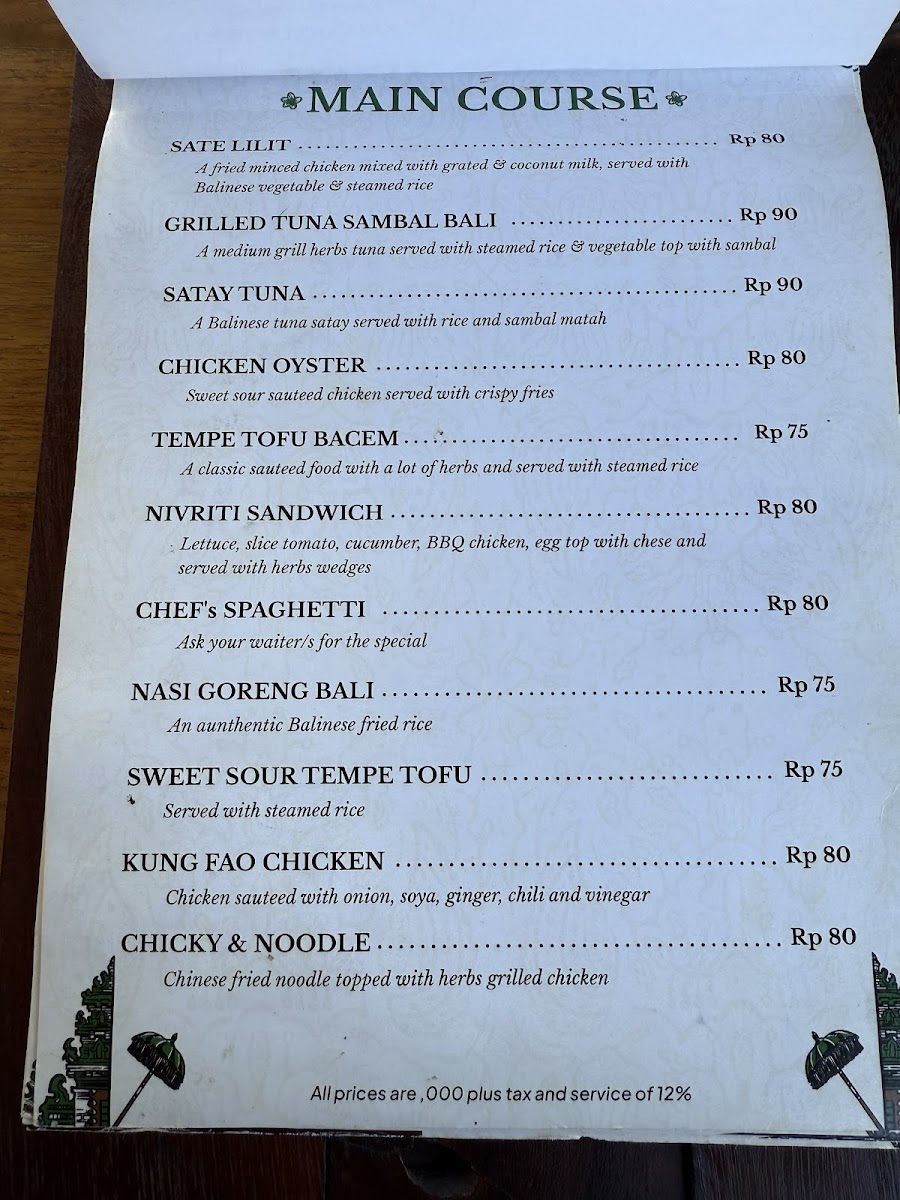 Welcome to Nivriti Bali, a hidden gem nestled in the lush landscapes of Sidemen, Karangasem. Here, dining transcends mere nutrition; it’s an experience defined by authentic Balinese flavors and a warm, inviting atmosphere. The elegant design, constructed entirely from bamboo, offers charming views of the surrounding greenery, creating a tranquil dining environment.